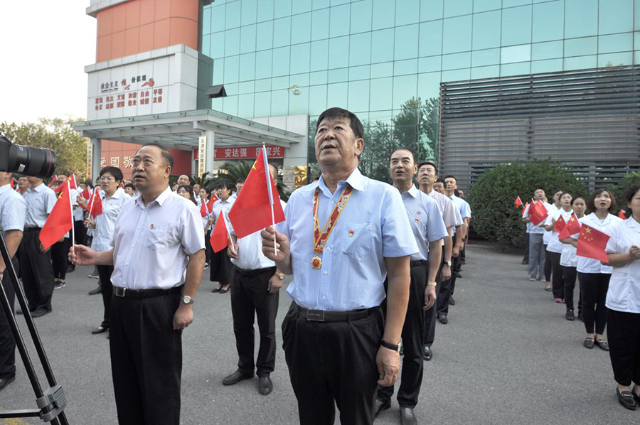 安達集團黨委書(shū)記、董事長(cháng)崔洪金在方陣前方,昂首注目著(zhù)徐徐升起的五星紅旗,帶頭高唱國歌。在那一刻,他忘記了自己一切的職務(wù)與榮譽(yù),只是那樣一位不忘初心、牢記使命的中國共產(chǎn)黨員,一位飽經(jīng)滄桑、搏擊半生的退役軍人。他見(jiàn)證了安達集團在國旗下的成長(cháng),見(jiàn)證了安達集團與新中國改革開(kāi)放同行的步伐,同時(shí)見(jiàn)證著(zhù)新時(shí)代的輝煌。