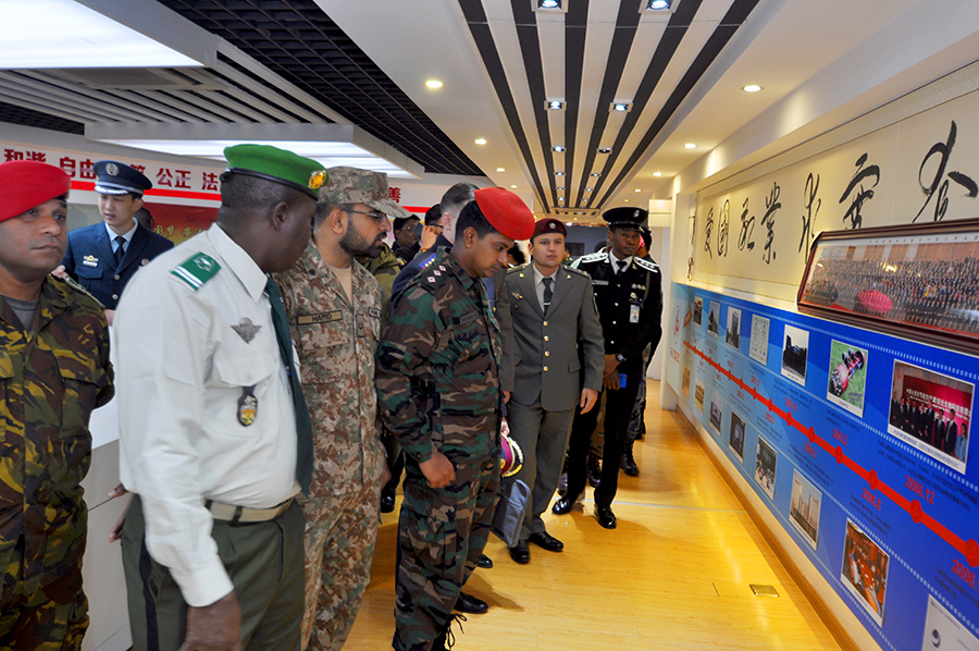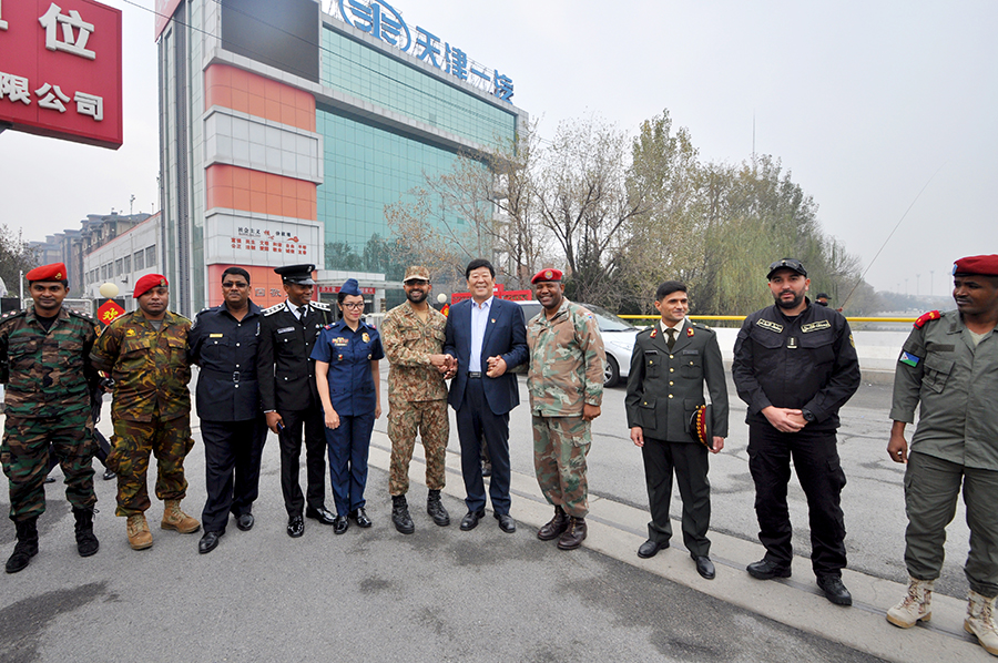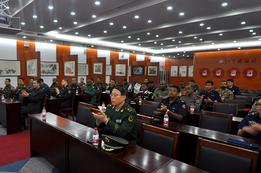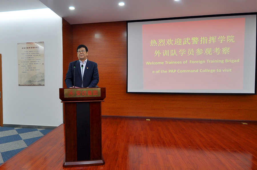 學(xué)員們首先來(lái)到道德講堂,觀(guān)看了企業(yè)宣傳片,隨后崔洪金發(fā)表了熱情洋溢的講話(huà),崔洪金首先向大家介紹了安達集團的發(fā)展歷程及“四大板塊”的經(jīng)營(yíng)成果,并就安達集團多年來(lái)心系國防,擁軍備戰的軍人情結有機的融入企業(yè)文化之中作出精彩詮釋?zhuān)赋觯骸傲暯娇倳?shū)記倡導的‘一帶一路’偉大戰略構想,是為了更好地構建人類(lèi)命運共同體,實(shí)現全世界的共同發(fā)展和人民的共同富裕。安達集團的產(chǎn)品已經(jīng)遠銷(xiāo)到西亞、非洲、澳洲、南美洲等多個(gè)國家和地區,我們將借助‘一帶一路’,走向更多的國家的地區,與更多的國家和地區建立商業(yè)往來(lái),以更優(yōu)的產(chǎn)品服務(wù)更多的用戶(hù)、造福更多的人民?!贝藓榻鹫f(shuō):“我是一名退役軍人,安達集團更是先后安置過(guò)500余名退役軍人在這里就業(yè),我們與軍人有著(zhù)不解之緣。我愿意與你們所有人都成為朋友,并通過(guò)你們與你們國家的人民成為朋友。蘇格蘭有一首非常有名的詩(shī)歌,后來(lái)被譜為歌曲,在全世界廣為流傳,逐漸成為膾炙人口的名曲,翻譯成中文名叫《友誼地久天長(cháng)》,愿安達與你們友誼地久天長(cháng),愿中國與你們的國家友誼地久天長(cháng)!”武警指揮學(xué)院的領(lǐng)導及各國外訓軍官學(xué)員對崔洪金的講話(huà)報以熱烈掌聲,武警指揮學(xué)院領(lǐng)導胡金紅代表全體外訓學(xué)員向崔洪金董事長(cháng)贈送紀念徽章以示敬意。