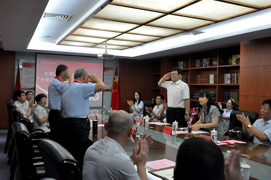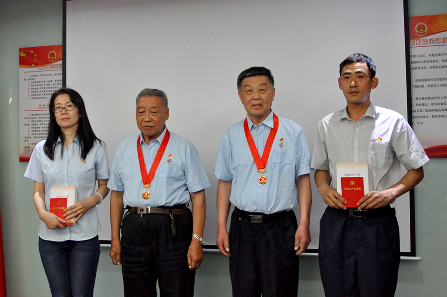 在頒發(fā)儀式上,全體黨員高唱國歌,一起重溫入黨誓詞,區工商聯(lián)會(huì )員企業(yè)黨委副書(shū)記李春節,安達集團黨委書(shū)記、董事長(cháng)崔洪金,向黨齡達到50周年的兩名老黨員頒發(fā)“光榮在黨50年”紀念章。與會(huì )全體黨員以熱烈的掌聲,向老黨員50年來(lái)的無(wú)私奉獻和革命本色致以崇高的敬意?;顒?dòng)期間,老黨員向新黨員代表贈書(shū)和黨章并寄語(yǔ),激勵他們堅守初心、牢記宗旨,始終聽(tīng)黨話(huà)、感黨恩、跟黨走,更好地展現新同志的青春魅力和不悔的使命擔當,在實(shí)現中華民族偉大復興中國夢(mèng)的新征程中作出更大貢獻!