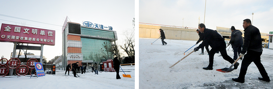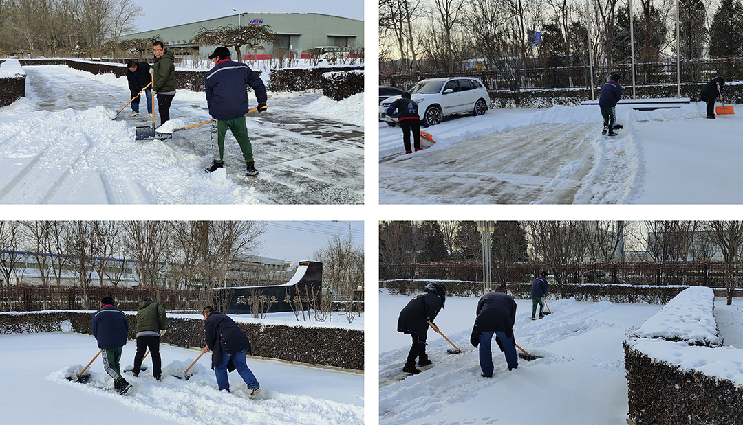 1214日,降雪覆蓋了津城大地。翩然而至的冬雪為城市平添了幾分浪漫與詩(shī)意,雪景雖美,但也為人們的出行和工作帶來(lái)諸多不便。為保障員工們安全出行,15日一大早,安達集團本部及各子公司廠(chǎng)院內,各單位員工在相關(guān)領(lǐng)導帶領(lǐng)下,手拿鐵鍬、掃帚、簸箕等工具,對辦公樓門(mén)口和廠(chǎng)區內重要點(diǎn)位進(jìn)行積雪大清掃。在襲襲寒風(fēng)中,大家頂風(fēng)除雪,不畏嚴寒,“浴”雪奮戰,一派熱火朝天的景象。