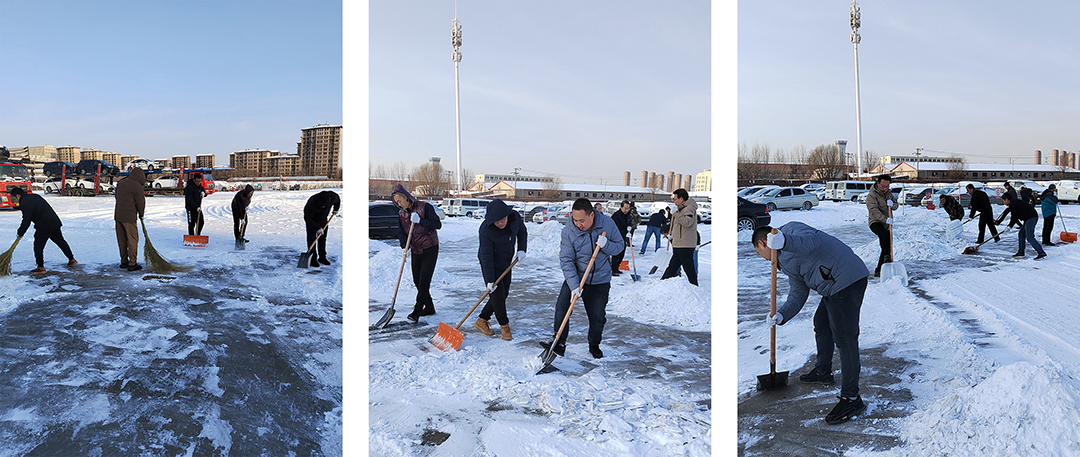 天氣寒冷絲毫不減大家的勞動(dòng)熱情,所有人員不退縮、不畏難,大家擰成一股繩,一起全力勞動(dòng)。聽(tīng),這邊有人說(shuō)“何姐,我來(lái)吧”,“我來(lái)我來(lái),我是黨員又是支部書(shū)記我帶頭”。無(wú)論男女,大家齊心協(xié)力,個(gè)個(gè)想著(zhù)沖鋒在前,打掃起來(lái)也是井然有序、配合默契,忙碌的身影構成一道靚麗的風(fēng)景線(xiàn),一會(huì )兒工夫,就清理出了一大片路面,為公司職工的出行提供了極大方便。雖然室外溫度低,路面積雪清理難度大,但大家勞動(dòng)的熱情和團結的力量讓寒冷的天氣變得格外溫暖。